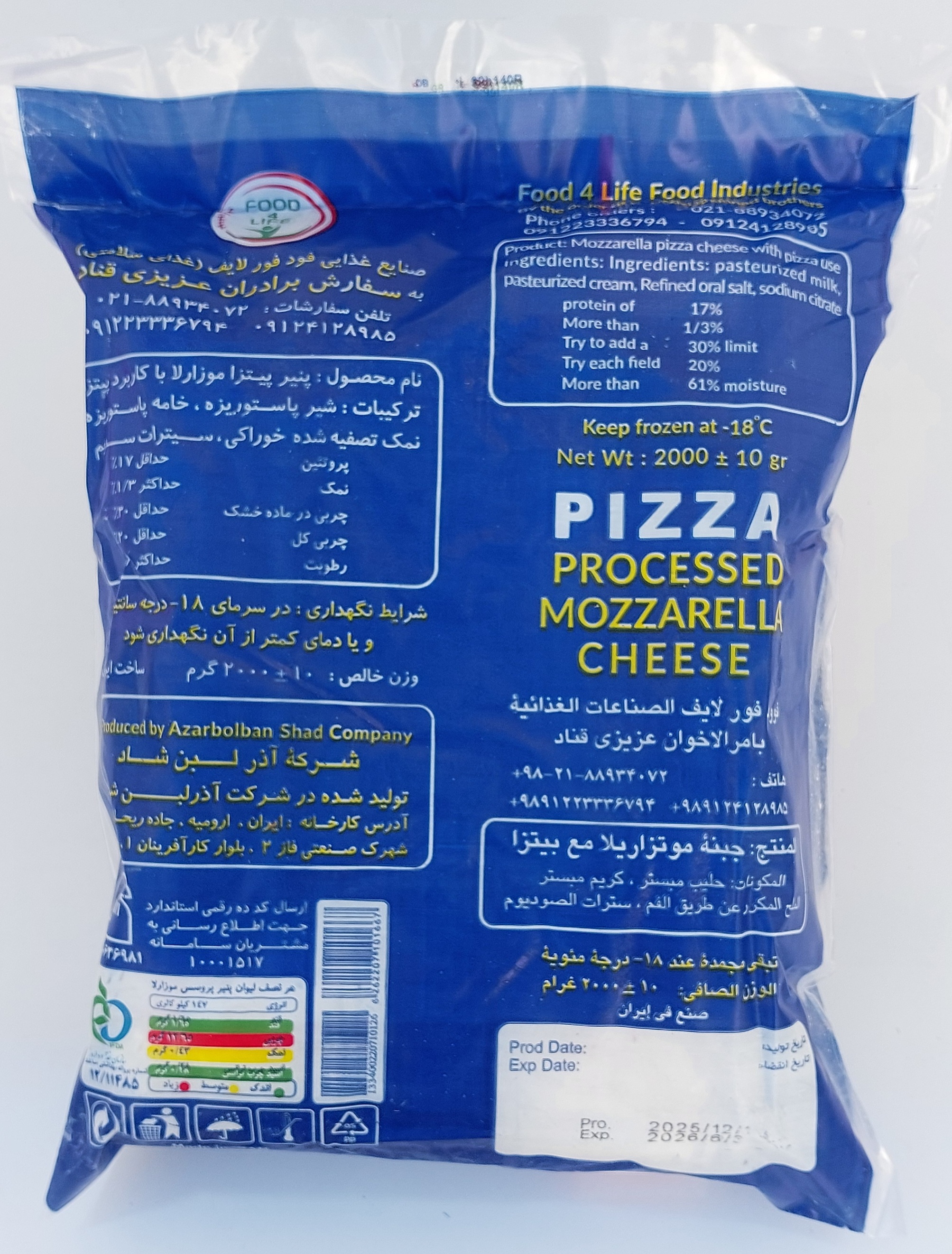 پنیر پیتزا موزارلا رنده شده فودفورلایف